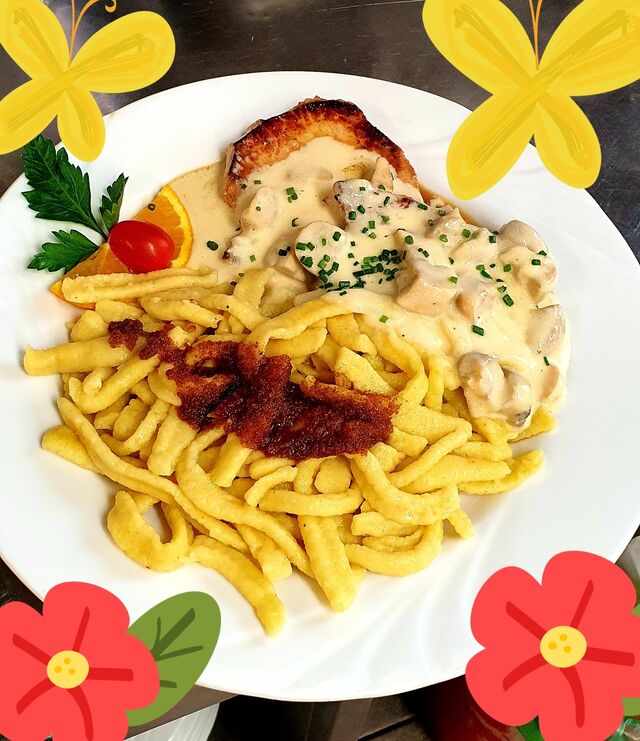 Schweinerückensteak mit Spätzle und Salat 13,50€